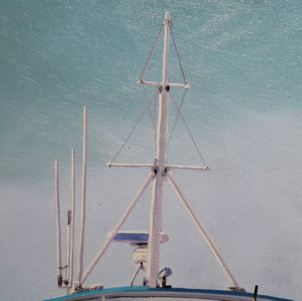I have now completed all the detail work on the boats and background and ready to complete the reflections on the water just under the boats.